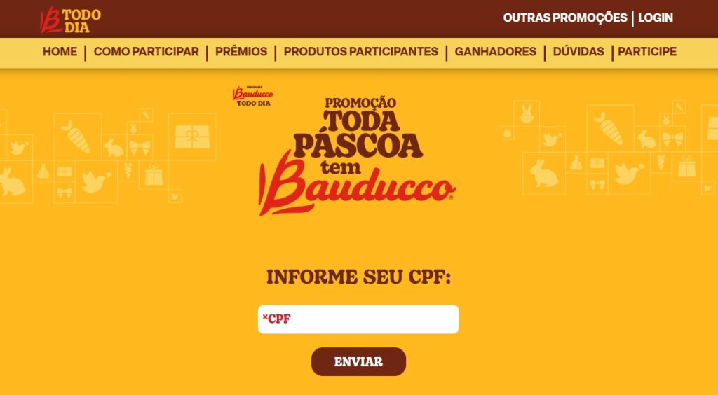 Participe da incrível Super Promoção “Toda Páscoa tem Bauducco” deste ano. A cada semana, a marca estará distribuindo emocionantes Kits Recheados de Prêmios. Não perca a chance de ganhar milhares de prêmios instantâneos no valor de R$500, e ainda concorra a um prêmio final de R$100 mil para desfrutar com sua família. Garanta sua participação e não deixe essa oportunidade passar!
