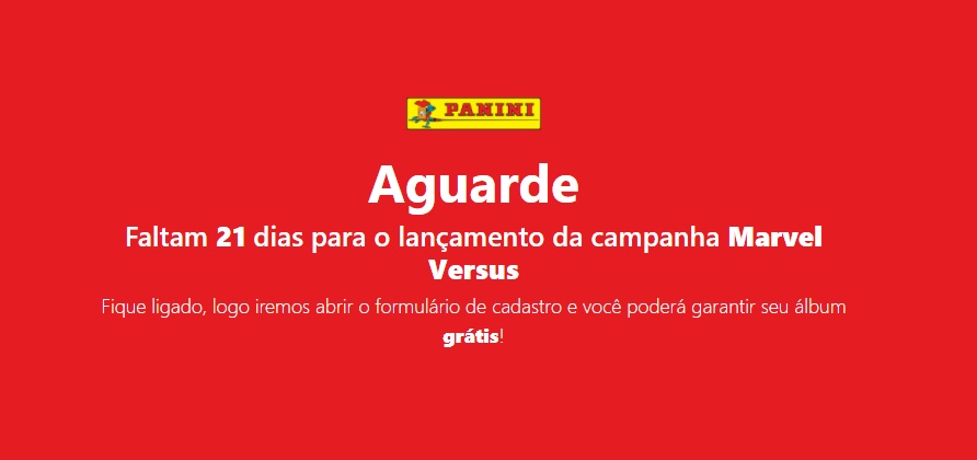 Você poderá pedir apenas 1 álbum a cada nova campanha. É permitido apenas 1 álbum por CPF. A campanha Marvel Versus ainda não foi liberada, mas está previsto para iniciar em 21 dias. Lembramos que a Panini costuma liberar o formulário a meia noite, e por isso os álbuns se esgotam muito rápido. Fique ligado que assim que estiver disponível nós avisaremos a você.