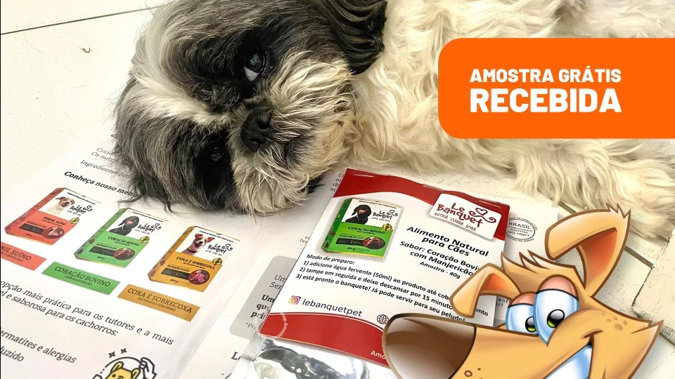 Le Banquet liberou Amostra Grátis de Alimento Natural para nossos cãezinhos, sem dúvida a opção mais prática para os tutores, além de ser saudável e saborosa, isso por que os alimentos da marca oferecem mais hidratação, auxilio no combate às dermatites, alergias e fezes firmes com odor reduzido. Um banquete saudável e balanceado que pode substituir por completo a ração do seu pet e ainda tem sabor inigualável. Os alimentos são cozinhados frescos e apenas a água é retirada, os nutrientes funcionais são o toque do Chef. A Le Banquet disponibiliza diversos sabores para seu pet experimentar, as amostras recebidas de 40g vieram no sabor Coração Bovino com Manjericão.