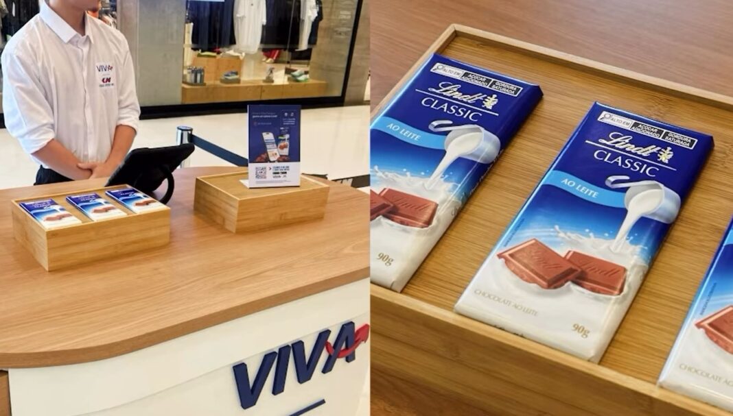 A barra de chocolate escolhida é a Lindt Classic ao leite, reconhecida por seu sabor equilibrado e textura cremosa, produto que tem forte apelo junto a consumidores que valorizam qualidade e tradição. Essa seleção agrega valor simbólico à campanha, alinhando o programa Viva CN a marcas de prestígio.