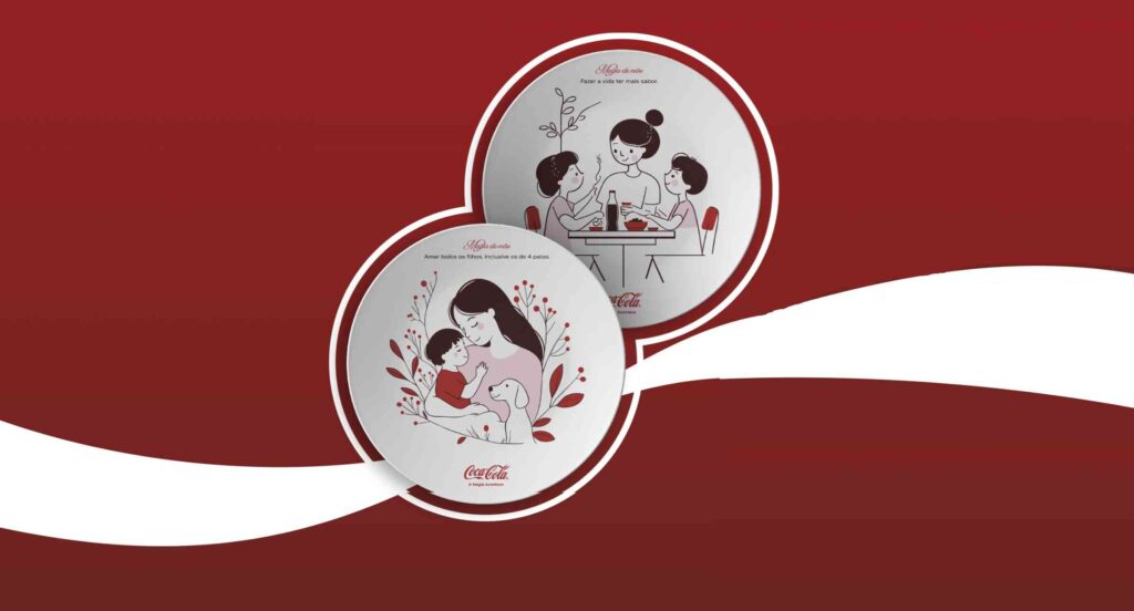 A Coca-Cola preparou uma surpresa especial para celebrar o Dia das Mães: uma ação que oferece dois pratos decorativos exclusivos da marca. Os itens trazem ilustrações emocionantes de mães e filhos compartilhando momentos únicos, tornando-se uma opção de presente inesquecível. Cada prato traz uma frase especial: “Amar todos os filhos, inclusive os de 4 patas” e “Fazer a vida ter mais sabor”, reforçando as mensagens de carinho e afeto típicas da data.