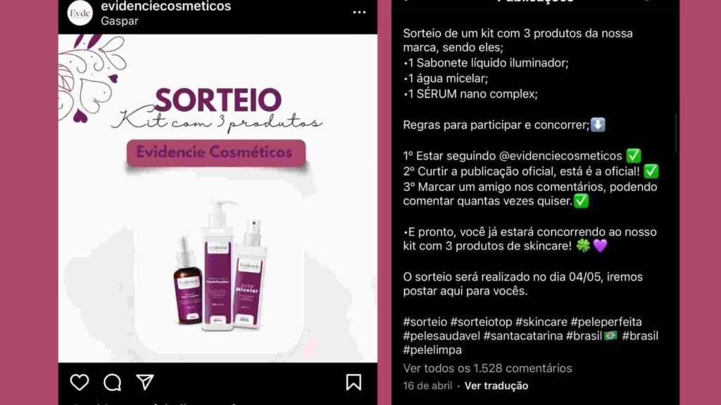 Os interessados em participar da campanha deverão acessar o perfil da marca no Instagram. Por lá, procure pelo post oficial e cumpra as regras disponíveis. Só assim você terá a chance de concorrer a um Kit contendo: 1 Sabonete líquido Iluminador, 1 Água Micelar e 1 Sérum nano complex.