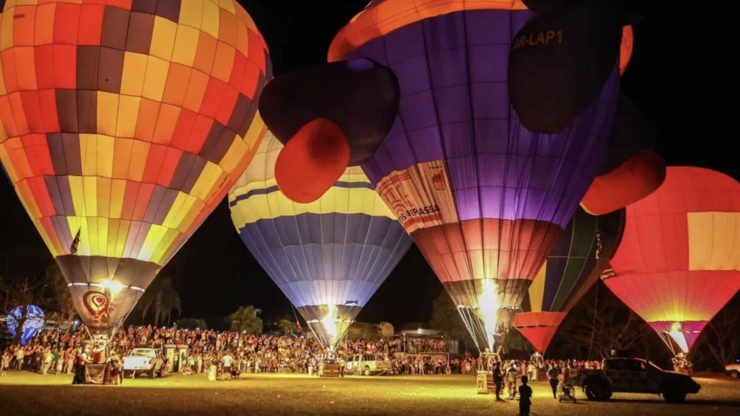 O evento acontece na Pousada Flor da Serra e reúne balões que costumam decolar em horários específicos, dependendo das condições climáticas. Esse tipo de atividade, comum em encontros de balonismo, exige vento estável e céu aberto, o que pode causar ajustes na programação ao longo dos dias.