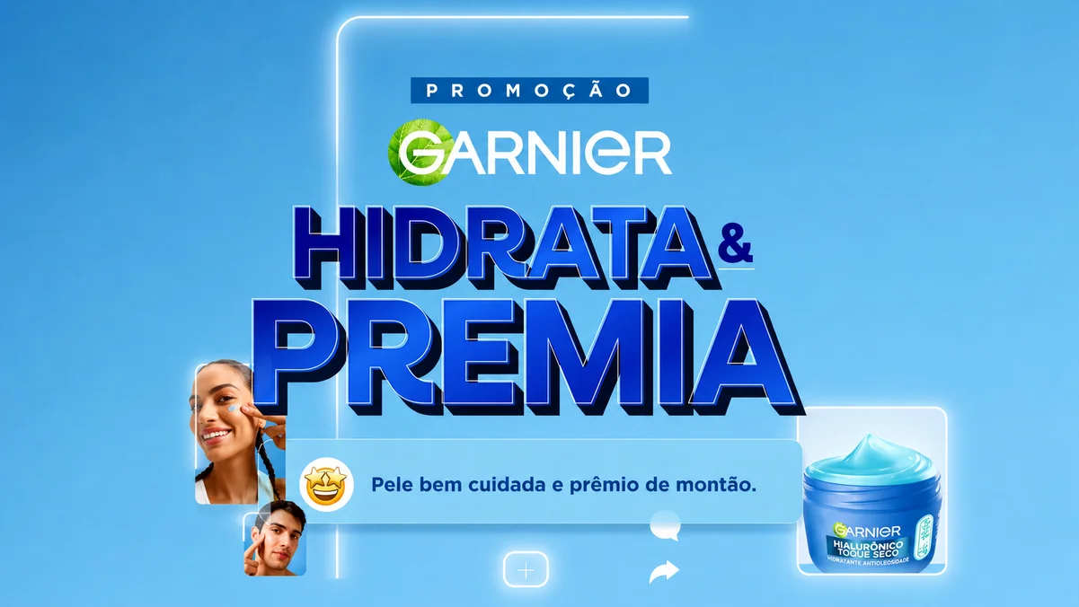 A Garnier decidiu inverter a lógica tradicional de lançamento de produto: em vez de apenas apresentar o novo hidratante, colocou o público para contar a história. A campanha “Garnier Hidrata & Premia” começa premiando criatividade — e não sorte — com recompensas que incluem malas cheias de produtos, uma minigeladeira de skincare e um prêmio final de R$ 100 mil em certificado de ouro.