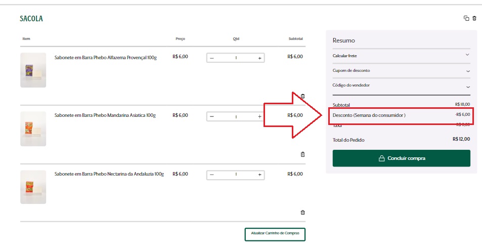 O desconto do item de menor valor será adicionado automaticamente ao seu carrinho de compras quando atingir 3 itens. (*válido para as linhas terrapeutics *exceto colônias, origens e fragrâncias suzette e um sonho). Na modalidade de retirada em loja ou entrega expressa, é fundamental verificar a disponibilidade de estoque na loja selecionada, assim você não precisará pagar o frete, acesse o site.