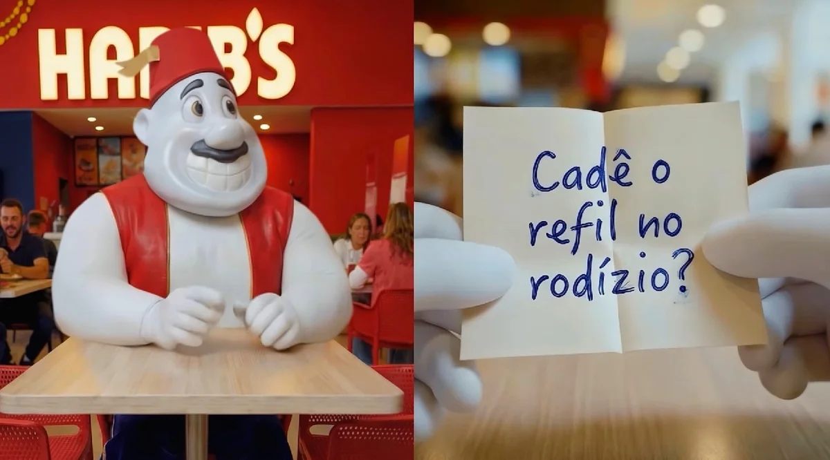 A comunicação da novidade veio acompanhada do retorno do Gênio do Habib’s, personagem clássico da marca. Aqui, o movimento é menos sobre inovação e mais sobre reconhecimento: usar um símbolo já conhecido para facilitar a aceitação de uma mudança operacional. Em vez de educar o público do zero, a marca ativa memória.
