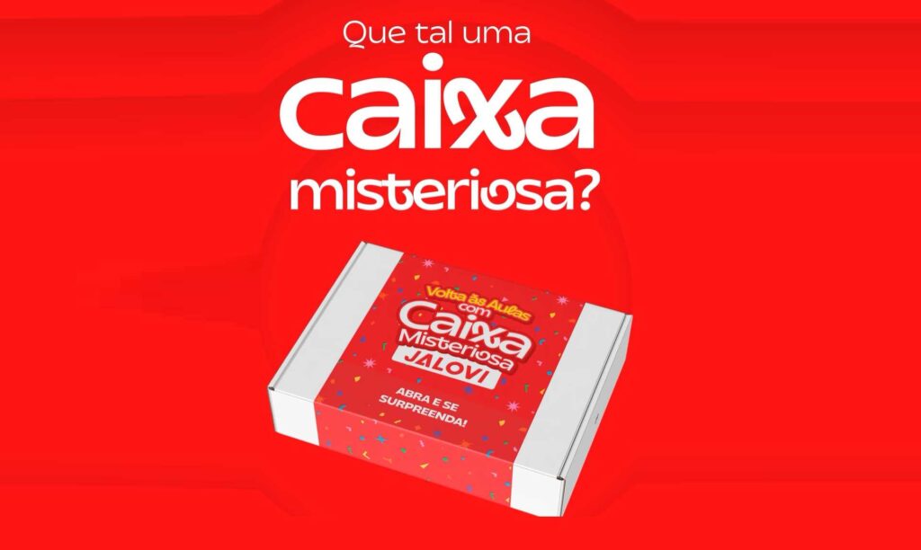 O ano mal começou, e a JALOVI já preparou uma campanha incrível para você participar, intitulada “Volta às Aulas JALOVI com Caixa Misteriosa”, realizada pela empresa JLV Livraria LTDA, é válida até o dia 28 de fevereiro ou enquanto durarem os estoques de brindes. Consumidores que realizarem compras a partir de R$ 300,00 (trezentos reais) terão direito a participar da ação. As Caixas Misteriosas estarão disponíveis em um local especial dentro das lojas JALOVI, e aqueles que atenderem a todos os requisitos da campanha poderão escolher 1 (uma) Caixa Misteriosa para chamar de sua!