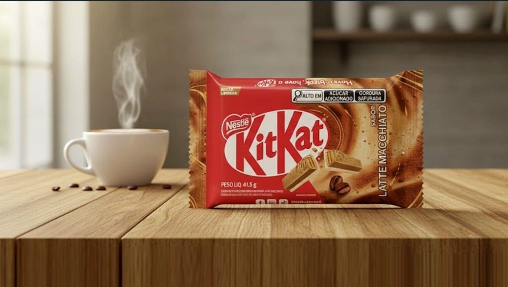 A marca colocou nas prateleiras uma versão com sabor Latte Macchiato, disponível em edição limitada e com 41,5 gramas. A proposta combina o wafer característico do produto com cobertura inspirada na bebida à base de café com leite, mirando diretamente o consumidor que já demonstrou afinidade por sabores derivados do universo do café.
