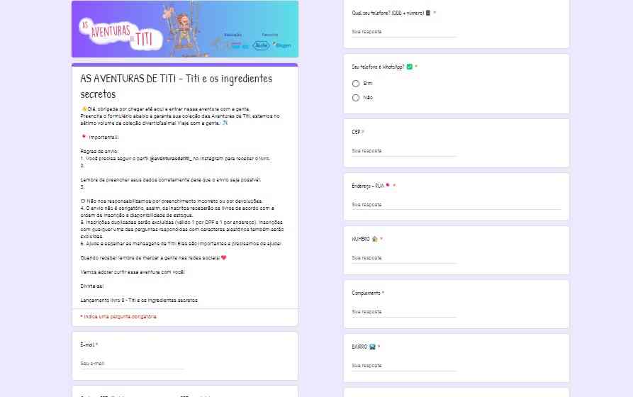 Siga o perfil da @aventurasdetiti_ no Instagram e depois realize sua inscrição no formulário para que o exemplar seja enviado para sua residência. O prazo para entrega é de 30 a 60 dias! Por favor, não peça mais de 1 exemplar, colabore para que a campanha continue firme forte.