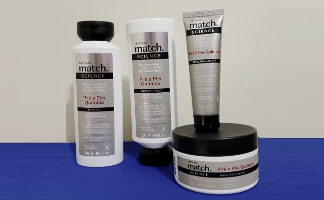 A nova linha de Match Science Pré e Pós-Química possui ácido itacônico* que, em sinergia com os demais ativos, age nas ligações rompidas durante os procedimentos químicos, trazendo maior resistência aos fios, e infusão de aminoácidos* que auxiliam na reconstrução da fibra do fio desde o córtex.