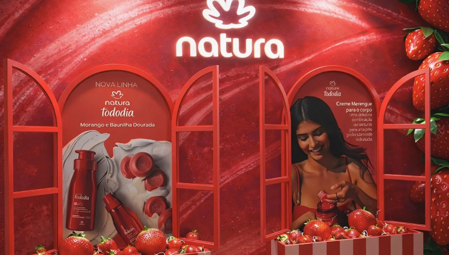 É nesse contexto que um espaço temporário no Shopping Eldorado, na Av. Rebouças, 3970 (Pinheiros), tem chamado atenção. Aberta ao público até 22 de março, a ativação funciona como um mini laboratório sensorial: visitantes podem testar produtos, comparar texturas e montar uma rotina básica de hidratação ali mesmo, sem pagar nada. A proposta gira em torno da linha Tododia Morango e Baunilha, da Natura.