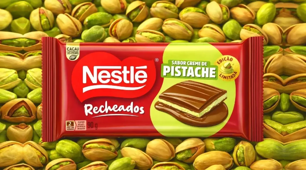 Quem anda reparando nas prateleiras de doces pode notar um novo movimento: o pistache continua avançando em categorias diferentes de produtos. Agora é a vez do chocolate. A Nestlé começou a distribuir uma edição limitada do Recheados Pistache, ampliando a linha de tabletes recheados da marca.