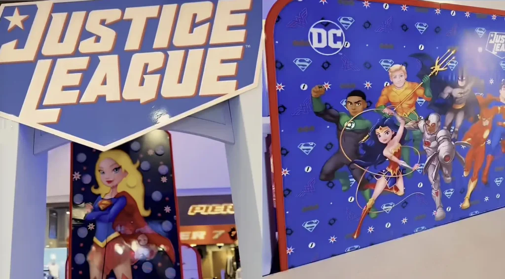 Logo na entrada, os visitantes encontram cenários que recriam o universo dos personagens. Gotham City, por exemplo, aparece em detalhes, criando um ambiente que convida os pequenos a embarcarem em aventuras.