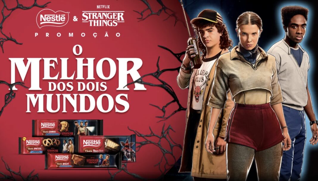 A Nestlé anunciou uma parceria com a Netflix para promover a última temporada da série Stranger Things. A colaboração envolve produtos licenciados da linha ChocoBakery, embalagens especiais, ações em pontos de venda e a promoção O Melhor dos Dois Mundos, que oferece prêmios inspirados na produção.