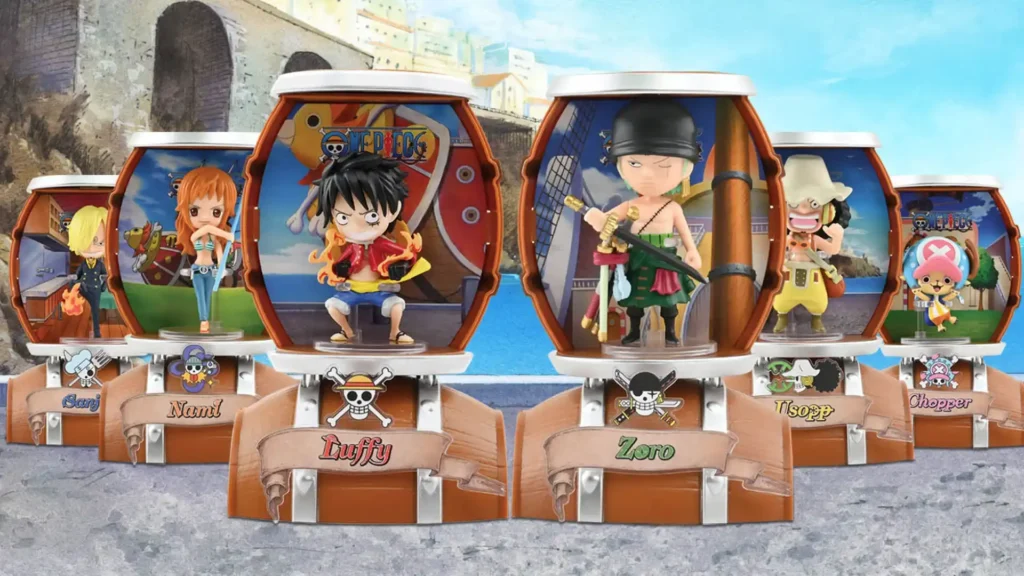 O conceito da Barrel Capsule transforma o unboxing em uma jornada. Cada barril esculpido entrega, camada por camada, uma experiência narrativa: primeiro um cartão de pista, depois uma lista de verificação de colecionador inspirada nos cartazes de procurados da série, e, por fim, a figura surpresa do personagem. A mecânica inclui revelações com água, interação tátil e montagem simples da base de exibição, reforçando o apelo tanto para fãs quanto para colecionadores.